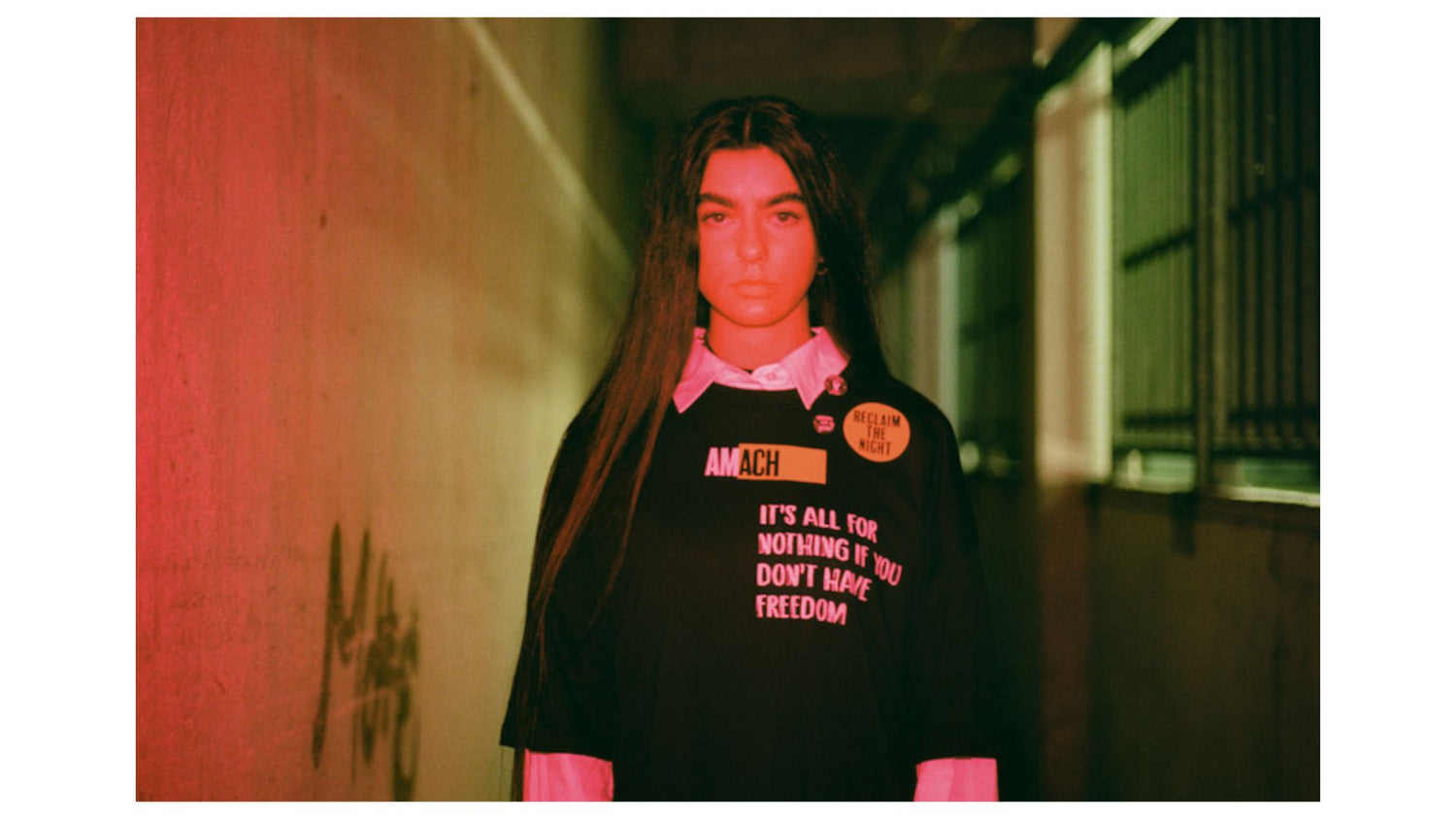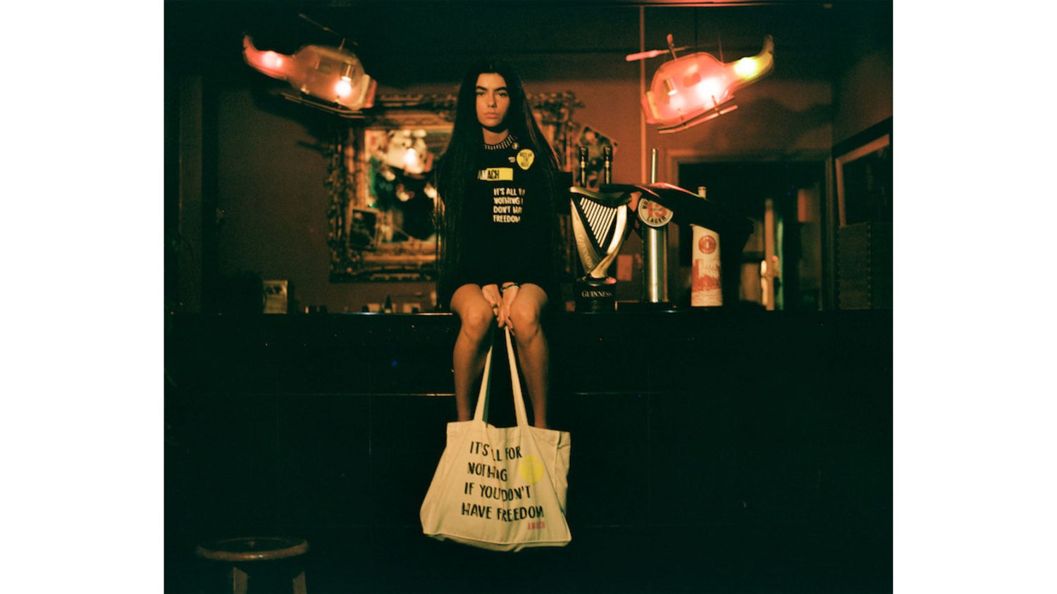 BRAND STORYAMACH FOCUSSES ON STORYTELLING AS A BRAND WITH STRONG CULTURAL AND SOCIAL COMMENTARY THROUGHOUT. FORMULATING MEMORIES OF THE PAST WITH CURRENT LIFE EXPERIENCES TO CREATE SUBVERSIVE AND THOUGHT-PROVOKING DESIGNS. HIGH DESIGN, ATTENTION TO DETAIL AND AN EMPHASIS ON ETHICAL FABRICS AND PRODUCTION ARE THE PILLARS ON WHICH THE BRAND IS BUILT.AMACH IS BASED IN THE HISTORIC HOME OF SHIRT MANUFACTURING, THE ROSEMOUNT FACTORY, IN DERRY. THIS IS A SPECIAL PLACE THAT HAS SEEN THOUSANDS OF TALENTED SHIRTMAKERS WORK FOR OVER 150 YEARS. THE LAST ORDERS FOR JERSEYS LEFT THIS BUILDING IN THE EARLY '90S. THE ROSEMOUNT FACTORY IS AN ICONIC AND HISTORIC SYMBOL OF A LOST TRADE IN DERRY. AT THE TOP OF THE BUILDING IS AN ART INSTALLATION BY TIM ETCHELL THAT CAN BE SEEN FROM EVERY VANTAGE POINT IN THE CITY. ILLUMINATED, THE PIECE READS “A STITCH IN TIME”.