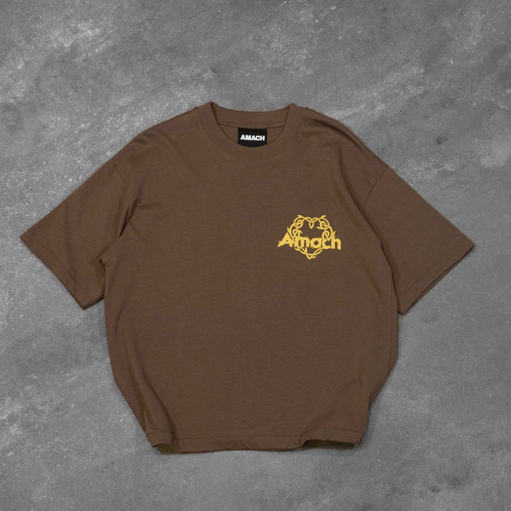 AMACH Irish Roots Tee. Made from Premium Organic cotton, with Screen-printed Irish Roots Logo at the Front, and back text screen-printed which reads “Roots of Ireland”. This piece is pre-shrunk, garment dyed, and box fit.